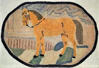 RHW attendees were glad to see this 80+ year old hooked rug had been well taken care of, as they closely examined the primitive textures & colors of her background materials, the cute little hooked nose of the jockey & so many other details - that are only seen from up close & in person.